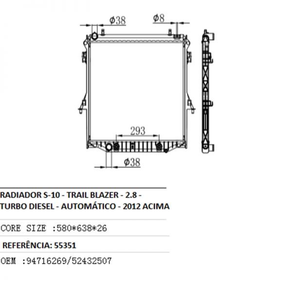 RADIADOR S-10 / TRAIL BLAZER 2.8 TURBO DIESEL AUTOMÁTICO 2012 ACIMA – 55351